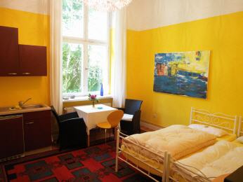 Die Ferienwohnung "annabelle" (ca. 25 qm) besteht aus einem Wohn-/Schlafraum mit integrierter Küchenzeile in heiterem, hellen Ambiente, mit großem Doppelbett (teilbar) und einem modernen hellem Bad mit Dusche und WC.