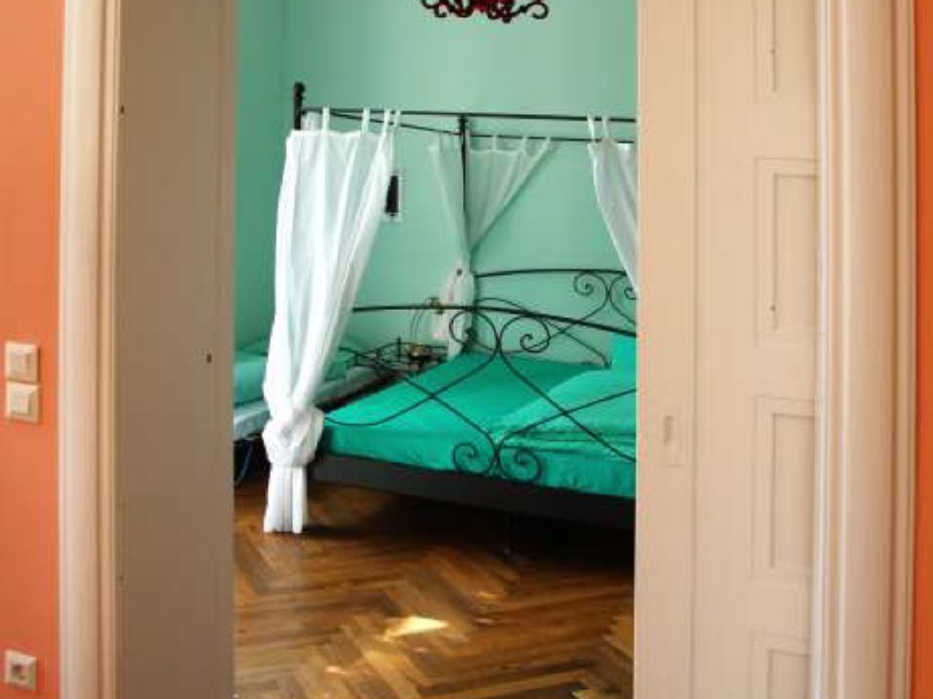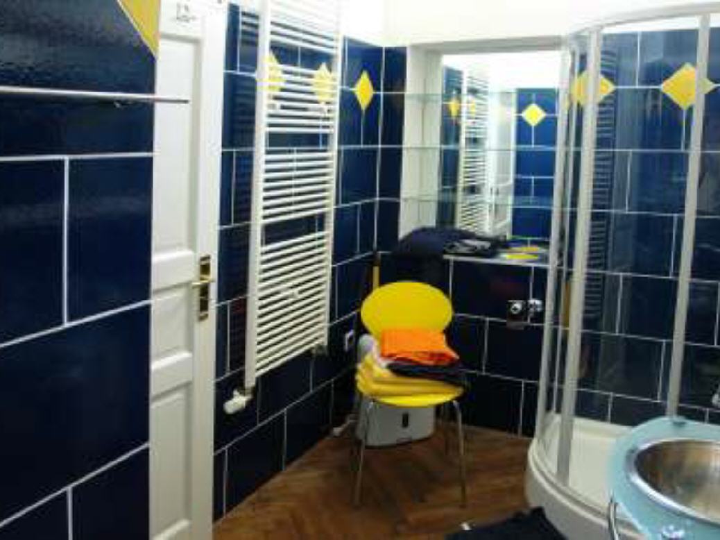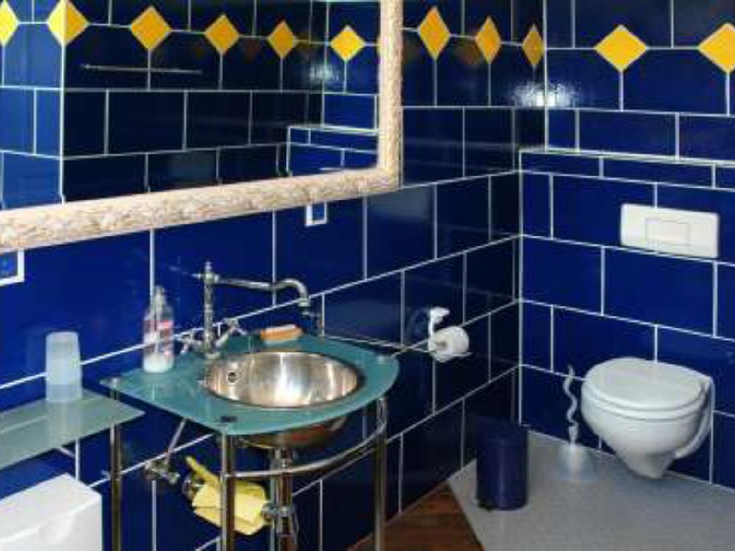 Das großzügige Bad ist ebenfalls ansprechend und feudal. Alle Räume sind farbig gestaltet und mit dem historischen Parkett ausgestattet.