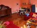 Im herrschaftlichen Wohnraum genießen Sie die Stunden auf zwei großen weinroten Sofas oder auch vor dem lodernden Feuer des eisernen Kaminofens.